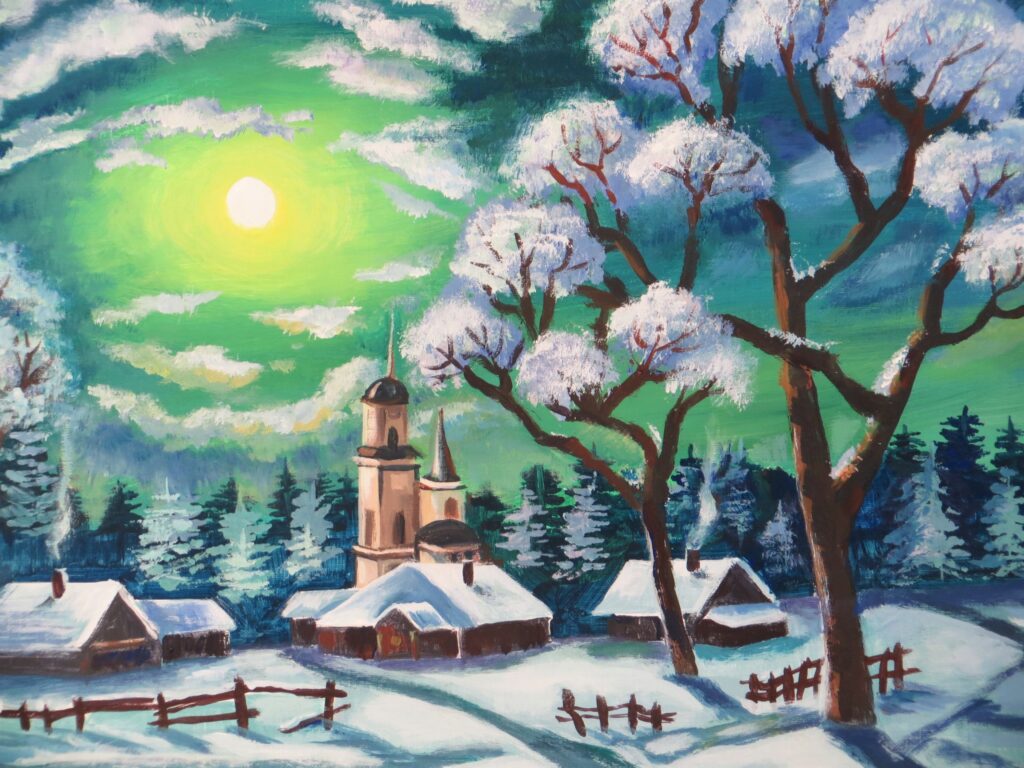 Winterdorf im Mondenschein